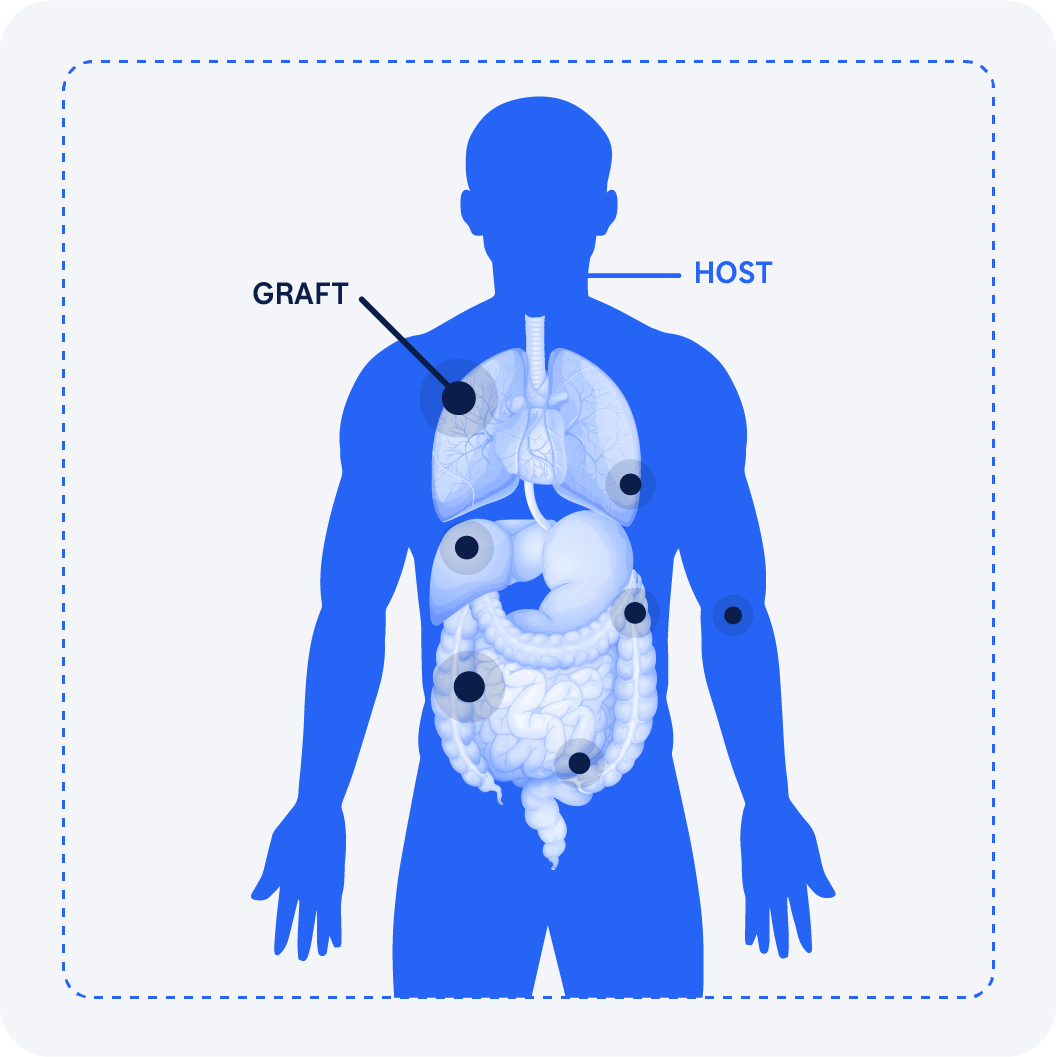 GvHD occurs when immune cells transplanted from a donor (the graft) recognize the transplant recipient (the host) as foreign, thereby initiating an immune reaction that causes disease in the transplant recipient.1,2,3