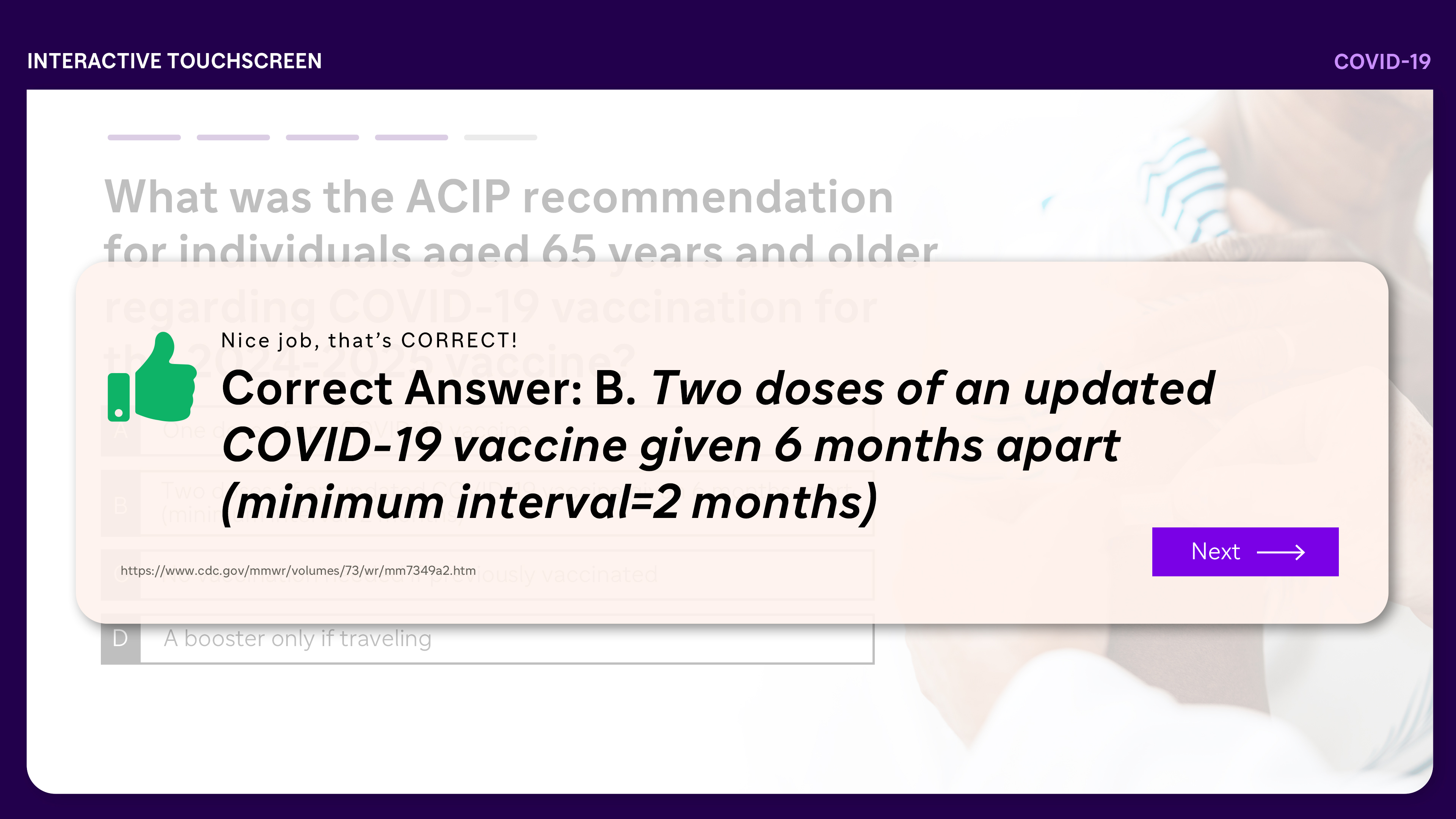 Two doses of an updated COVID-19 vaccine given 6 months apart (minimum interval=2 months)